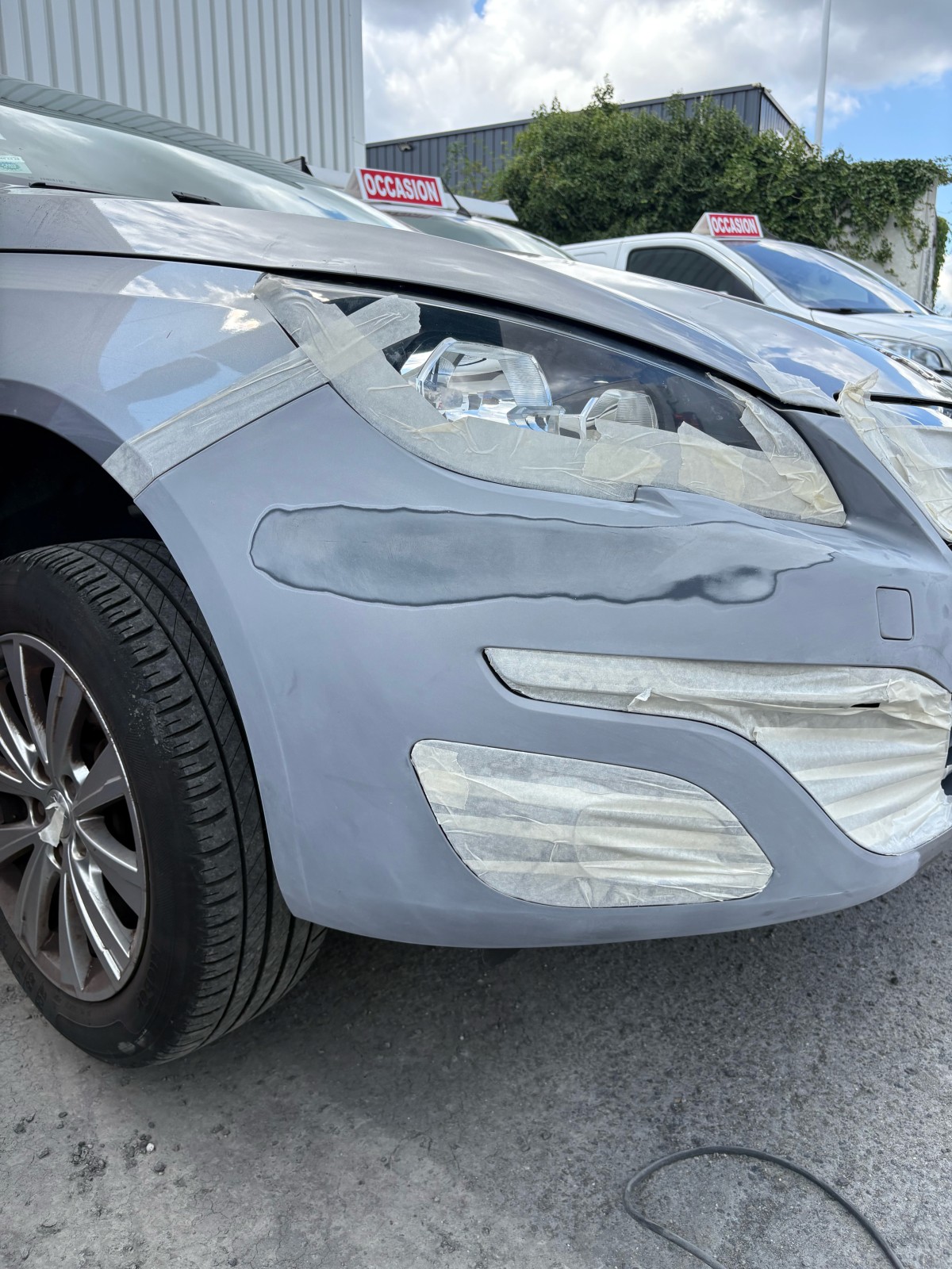 Notre équipe spécialisée en carrosserie mobile est intervenue à Libourne pour un raccord peinture sur une Peugeot 308. Le véhicule présentait un pare choc rayé et plusieurs petites zones avec une rayure visible, ce qui pouvait poser problème lors de la restitution de LLD.